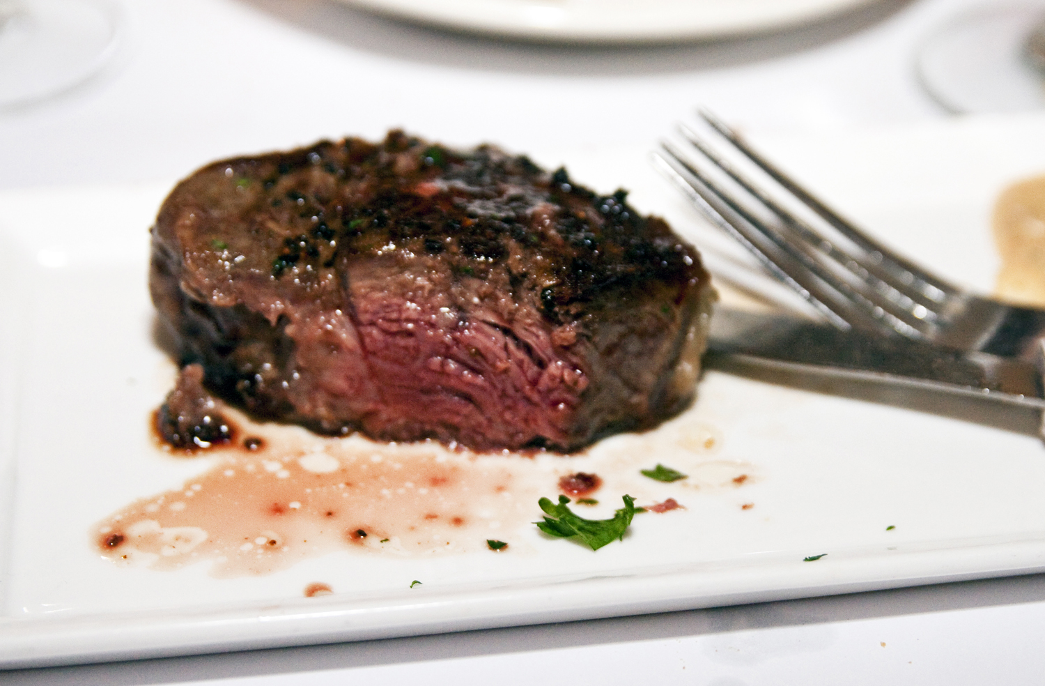 This baby still had all the same qualities as the last visit, only this time there was only the one sauce and a more pronounced peppercorn crust. Further, the last time featured an aged cut, while this one was not aged, as far as I could tell.