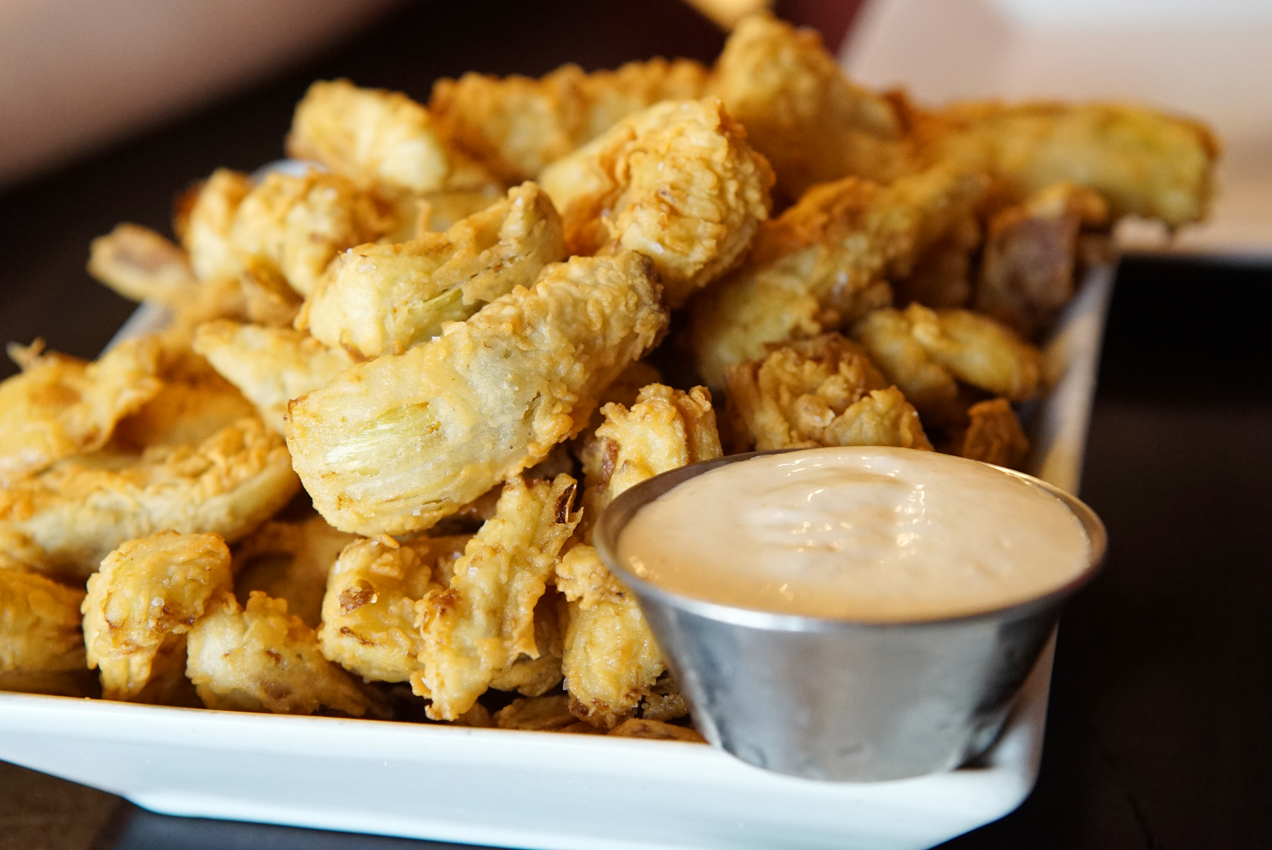 Fried artichoke hearts. These were tasty, juicy, crisp, well seasoned, and came with a really nice horseradish cream dipping sauce. A bit pricey at almost $9, but pretty good.