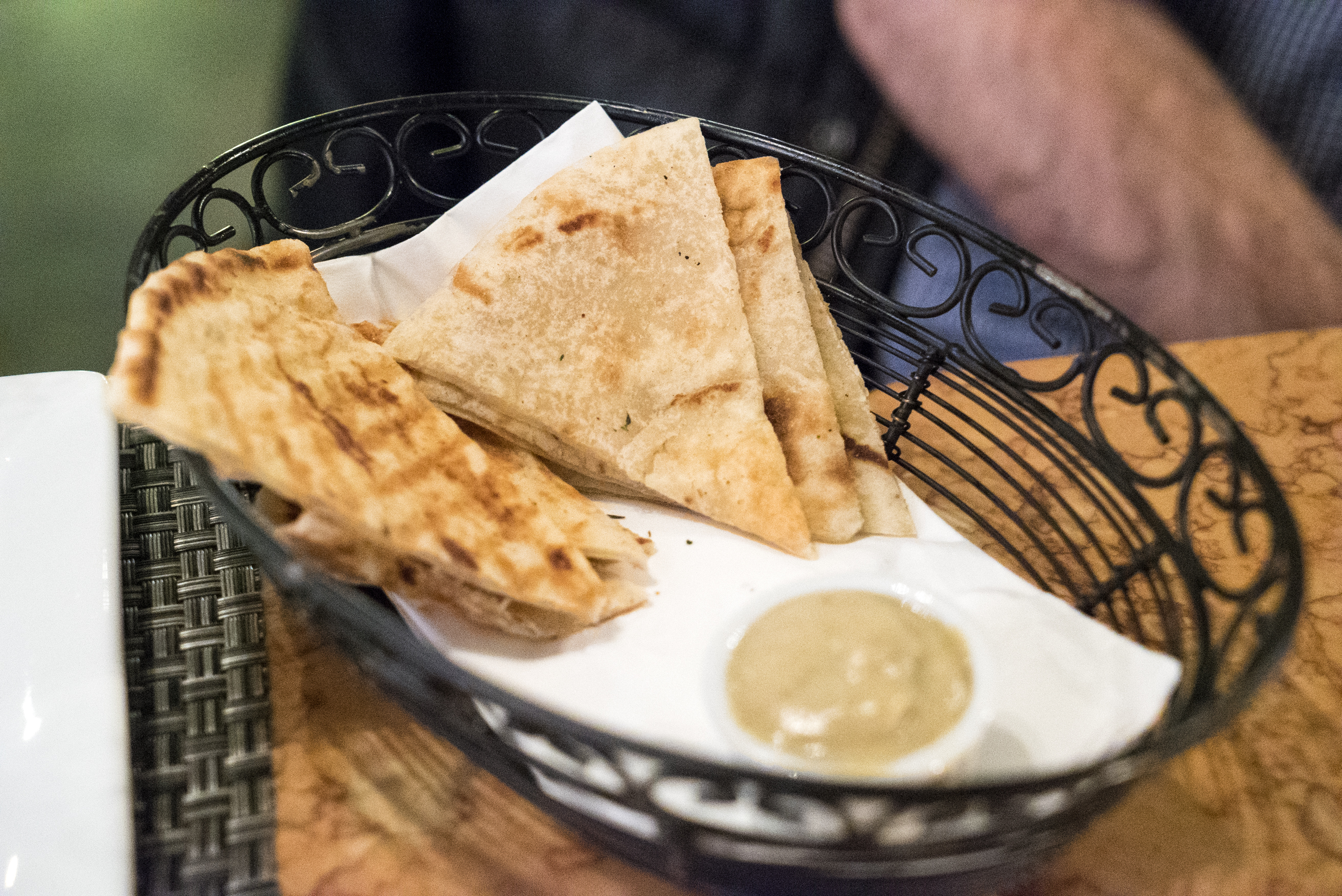 We started with some flatbreads on the table. This was similar to a pita, but more dense and much thinner. It was really nice and flavorful. It had a chewy texture as opposed to crisp, but in a way that almost reminded me of naan bread (which I love) or a thick crepe. It was served with a hummus-like dipping sauce. Very nice. I may have eaten more than my allotment for table sharing.