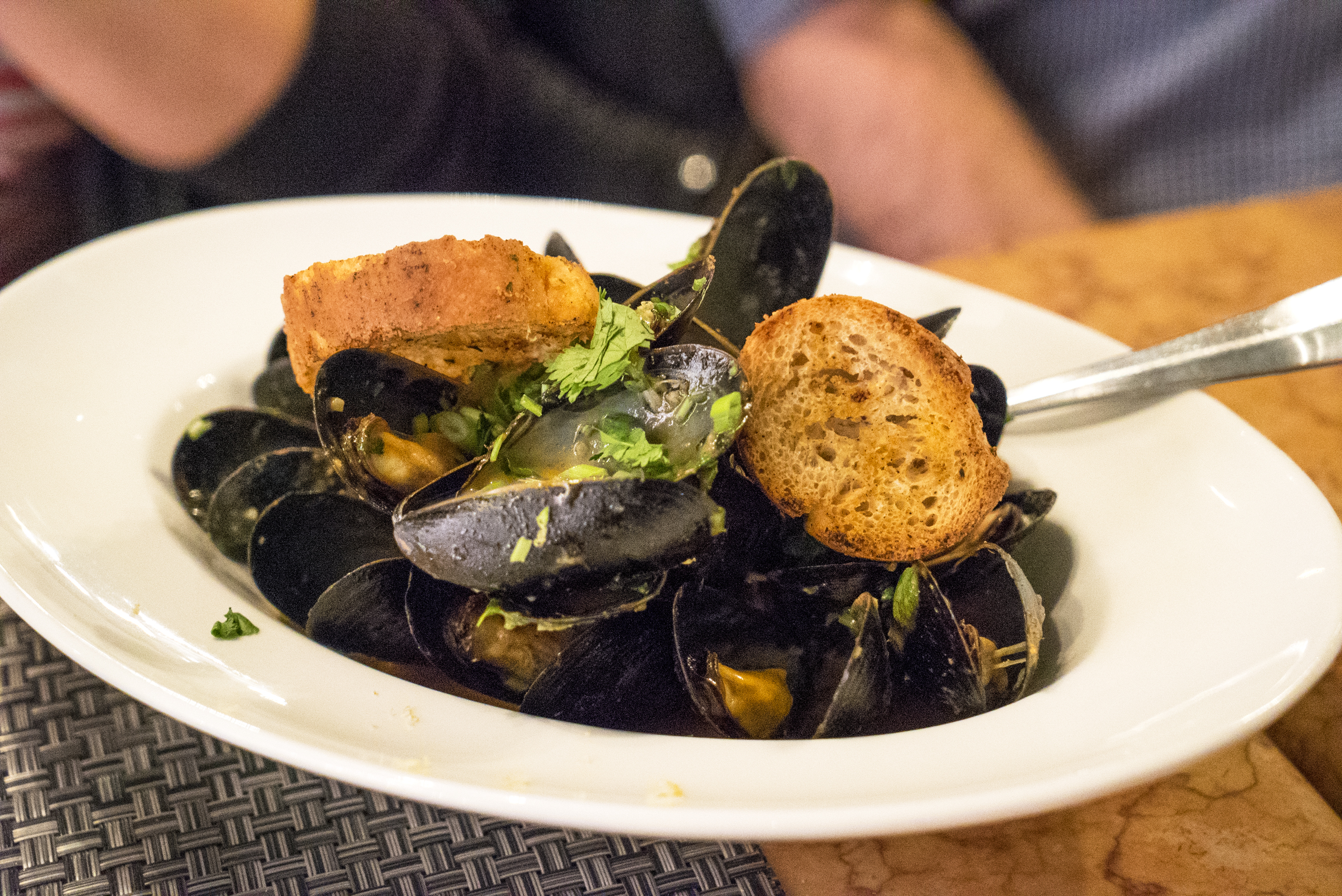 My wife had the mussels, which came with perfectly buttery and toasty bread and a really unique broth, which included almonds, that we were sucking up with straws at the end.