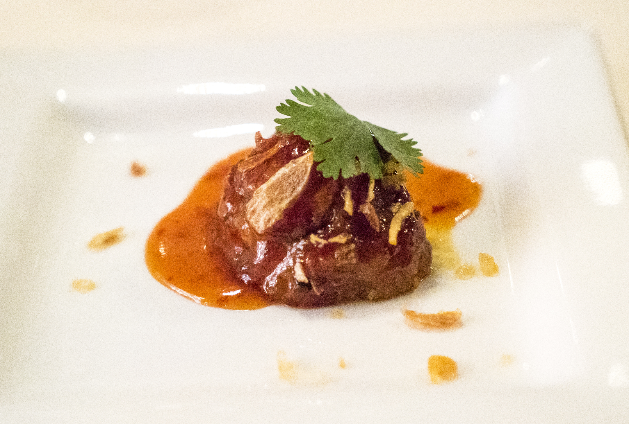 The Thai meatball with dried crispy shallots, sweet chili sauce and cilantro was a really great bite as well. The meatball was a little harder than I had initially expected. Asian style meatballs tend to have more of a snap to them and are more dense. The flavor was great. Spicy.
