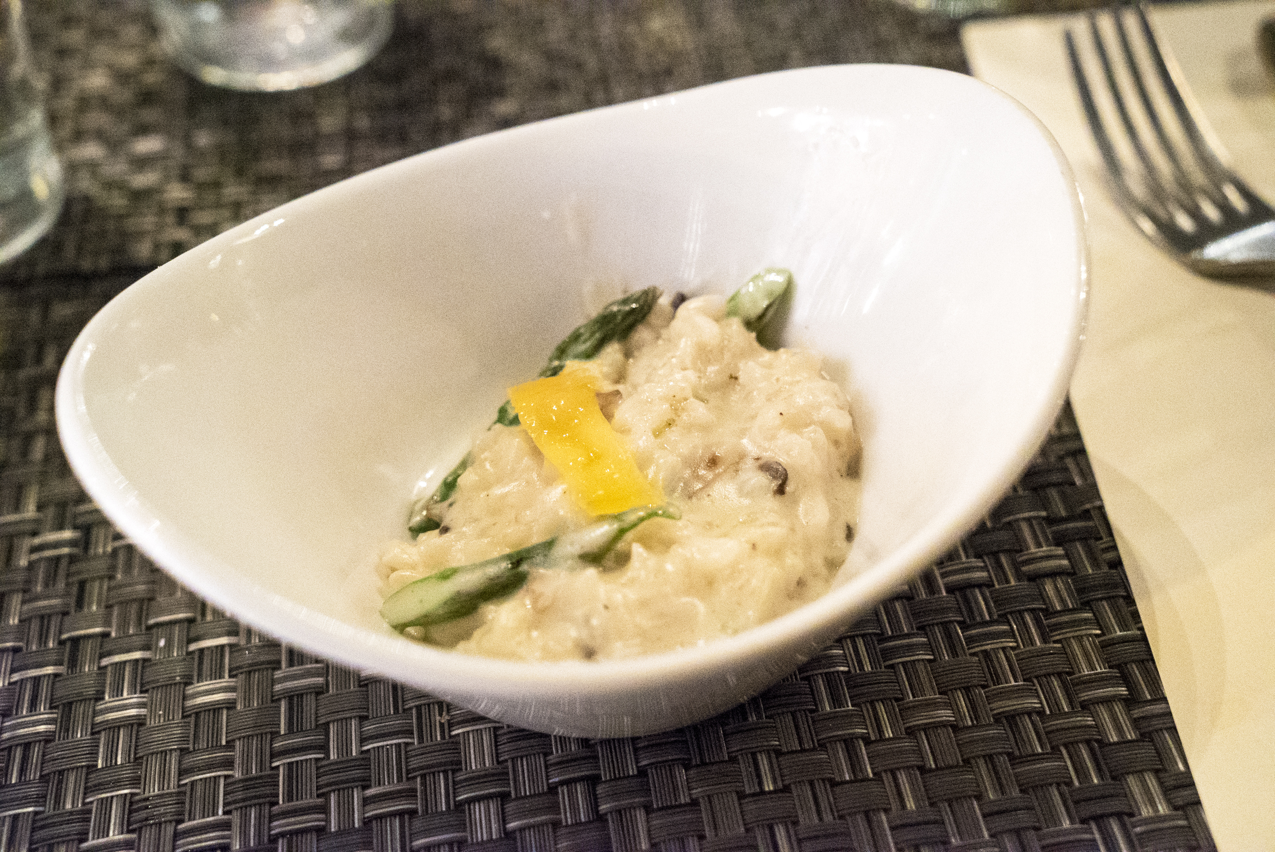 The wild mushroom risotto was rich and creamy (marscarpone base), but not heavy. It was dressed deftly with a white truffle oil that really brought out the earthy flavors of the mushrooms.