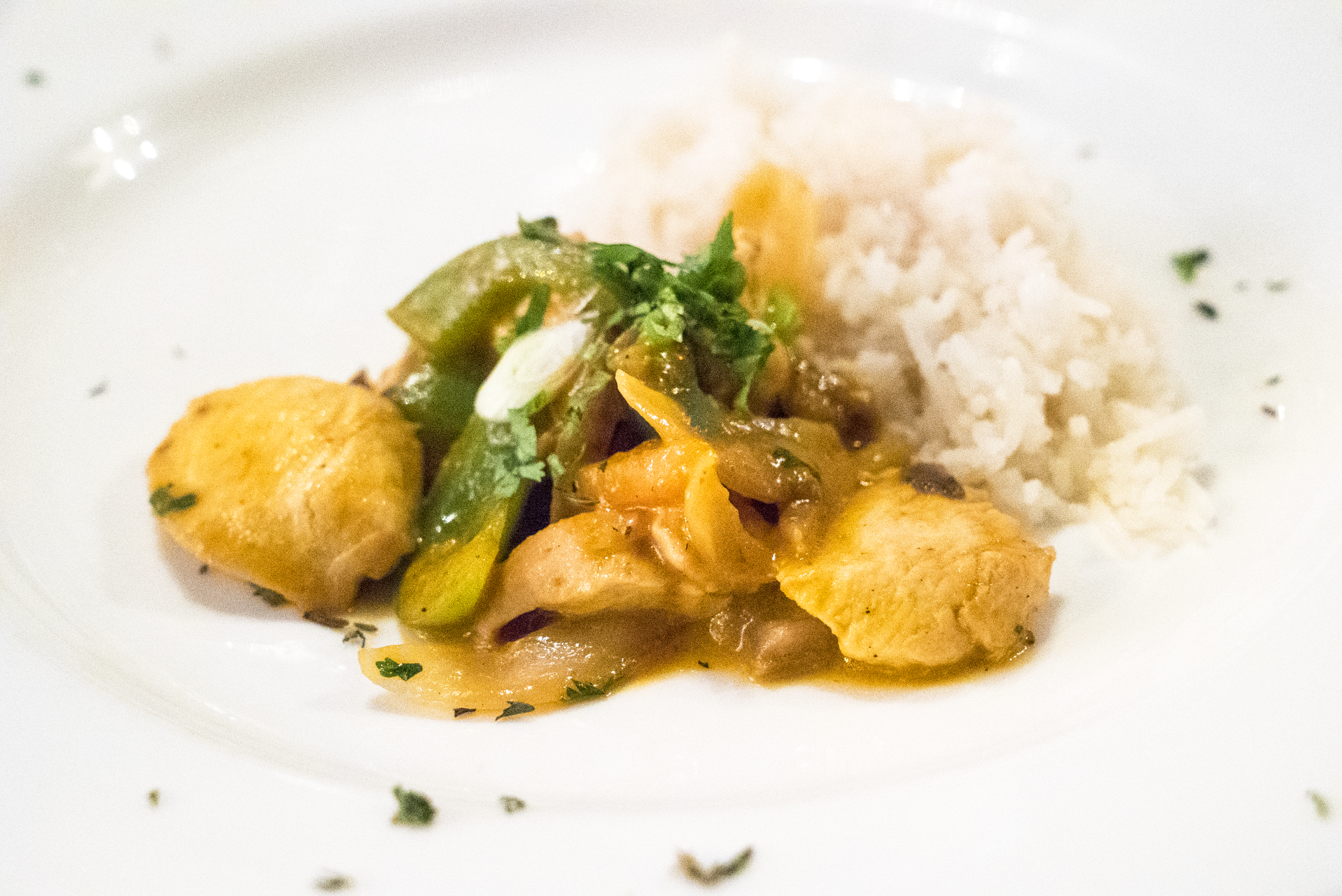 First were the chicken lettuce wraps, with minced curried chicken, carrots, celery, shredded beet and cashews.