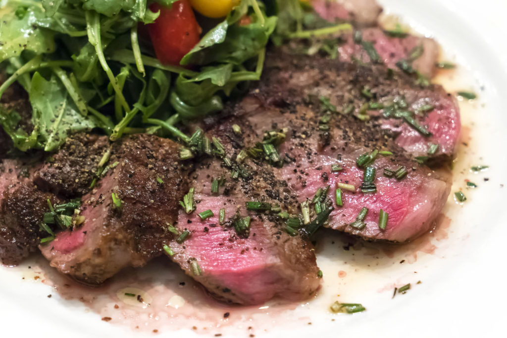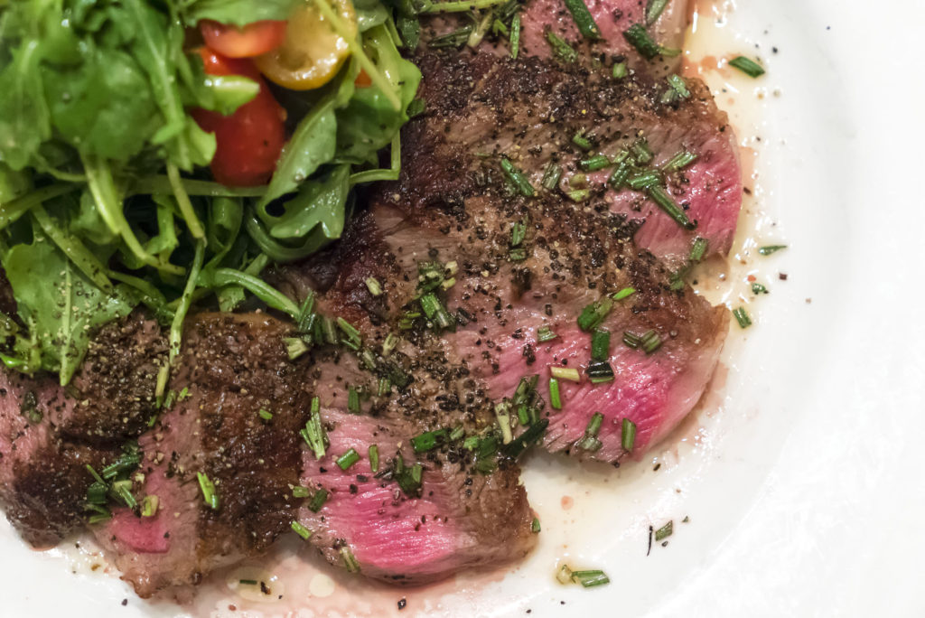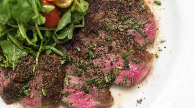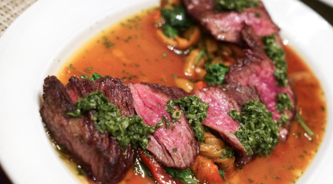 In the background, you can also see some grilled romaine lettuce which came with the steak (along with a nice reduction-style steak sauce, and the sun dried tomato chimichurri that usually accompanies the steak frites).