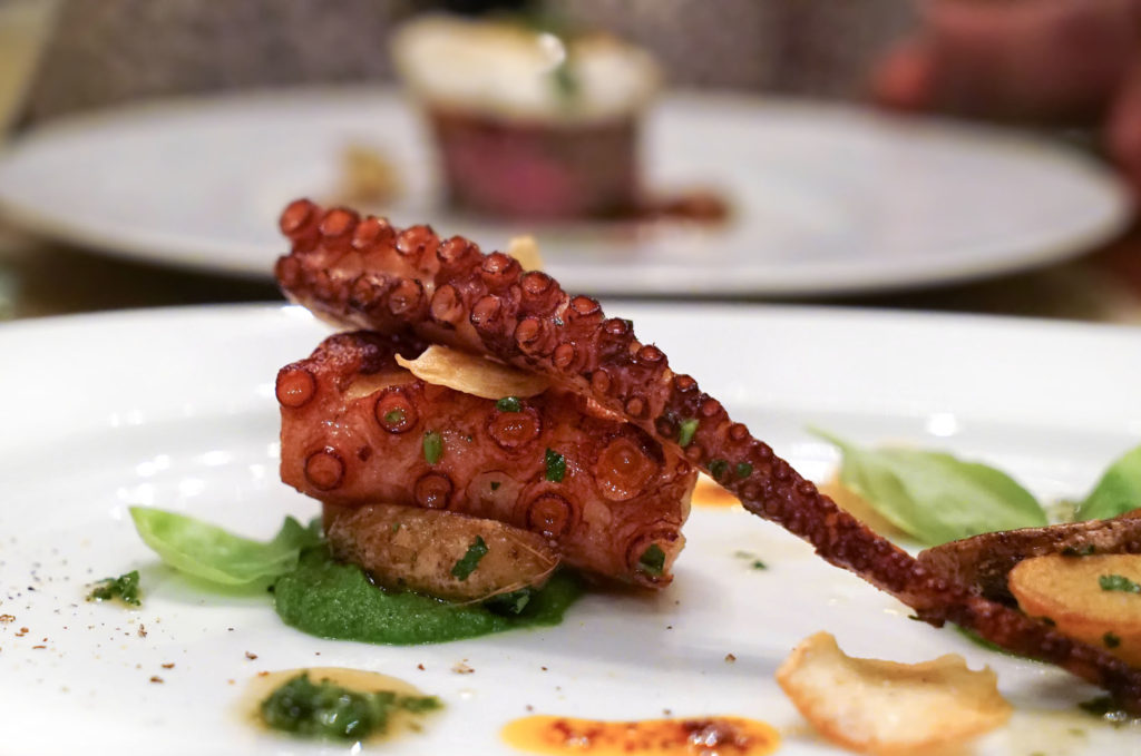 This a la plancha style octopus was crispy on the outside and tender on the inside. It was really nice! It’s served with marble potato salad, fried capers, black garlic puree and aged balsamic. This was my favorite of the apps.