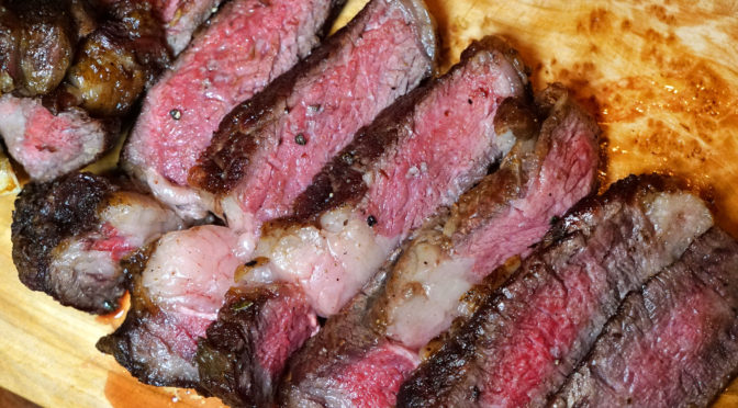 This beauty is pre-sliced and 32oz on the bone. Take a closer look at the meat though.