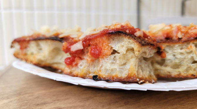 I’m usually not a fan of Sicilian because it can get heavy. But I can easily eat a bunch of slices of Fini’s Sicilian. Look at this: