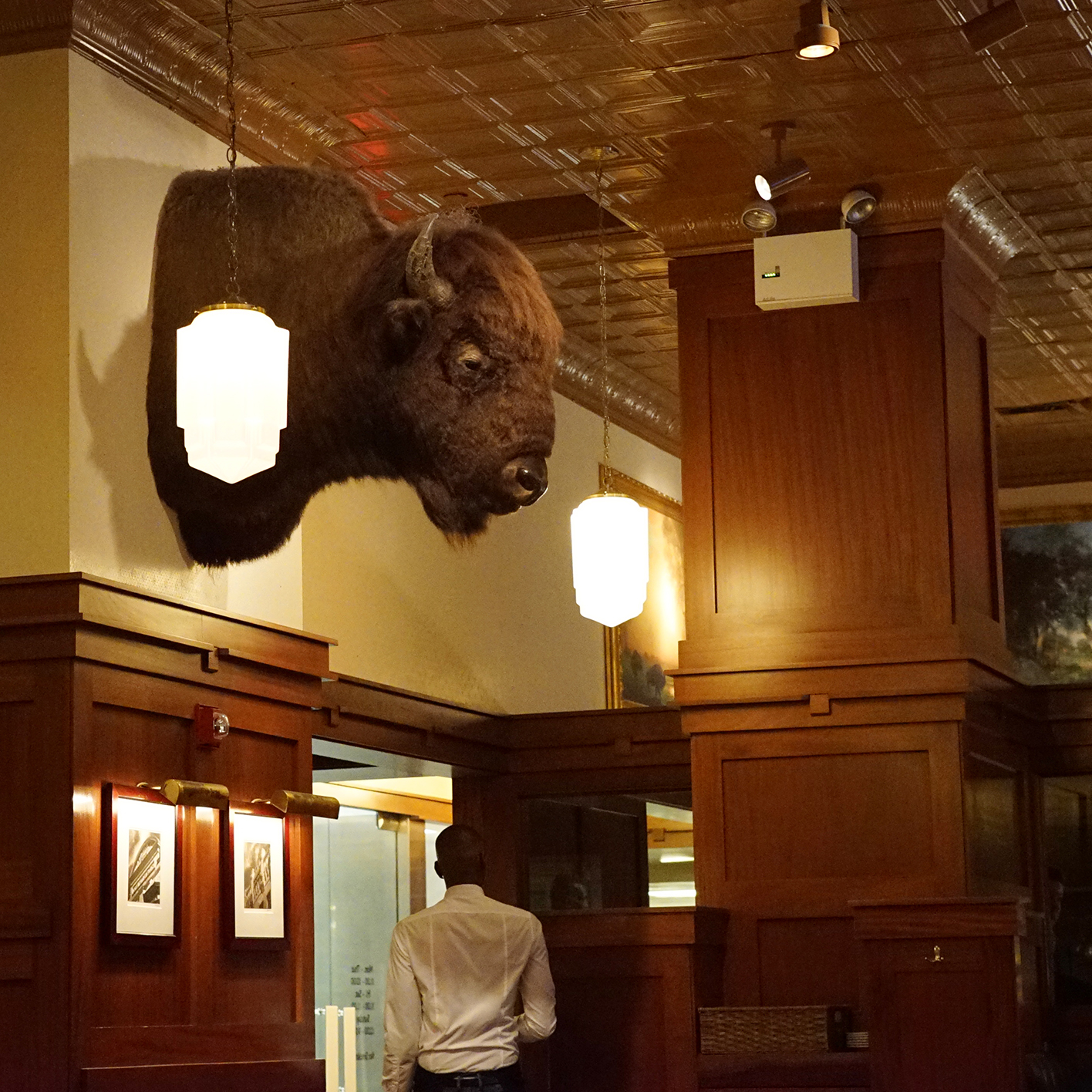 I actually like the feel of this place. It’s warm and inviting, there is always a decent crowd of people having a good time, and the walls have bison heads on them. Love it.
