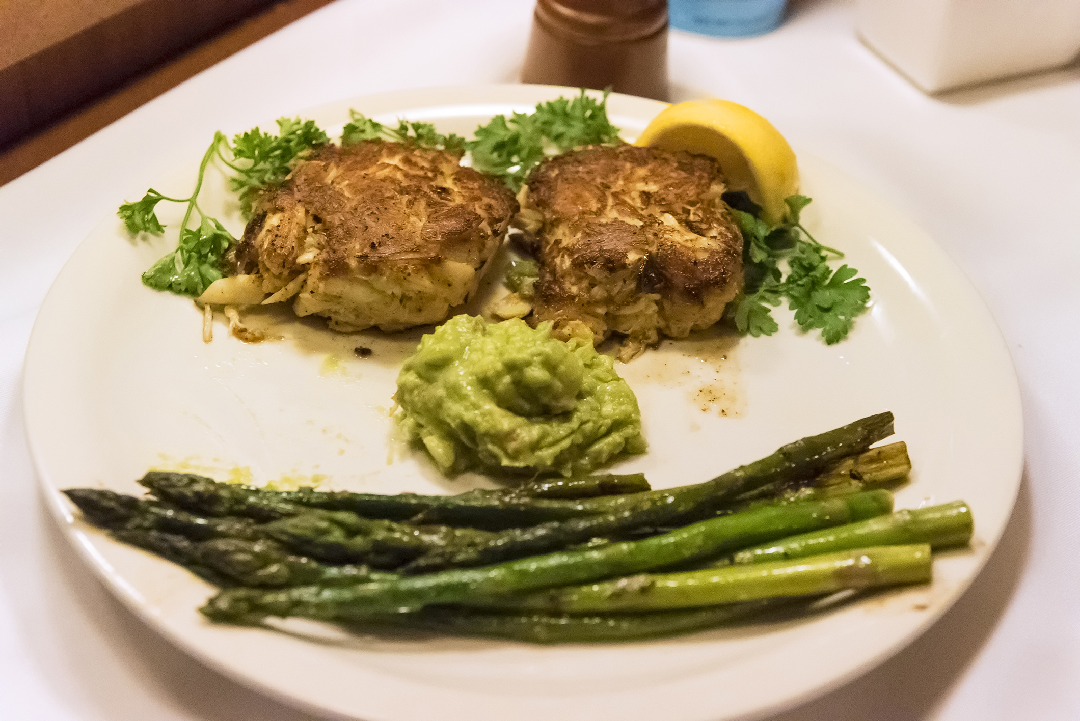 There’s a cedar plank salmon on the theater menu, which looked nice, but my wife went with the crab cakes. These were actually really nice. A little crisp texture on the outside, good quality lump crab meat, and the addition of guacamole made for a really refreshing bite. They also offer trout and a catch of the day, but no shellfish, raw items or anything like that.