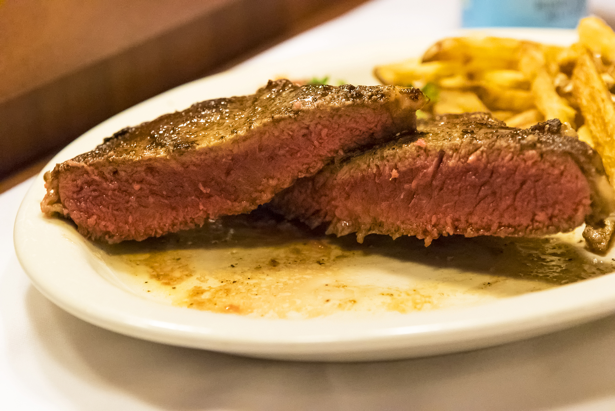 Here, they do not offer a porterhouse, and no cuts large enough for two. there is a filet, a NY strip, a rib eye, and a “steak frites” strip, which they say is a center cut strip. There is only one size of each offering, though to their credit they do offer each as a choice of either beef or bison. If it weren’t for that diversity of choice, I might have dropped this to a five or six. Speaking of choice, I think that’s what they’re rocking here in terms of quality.