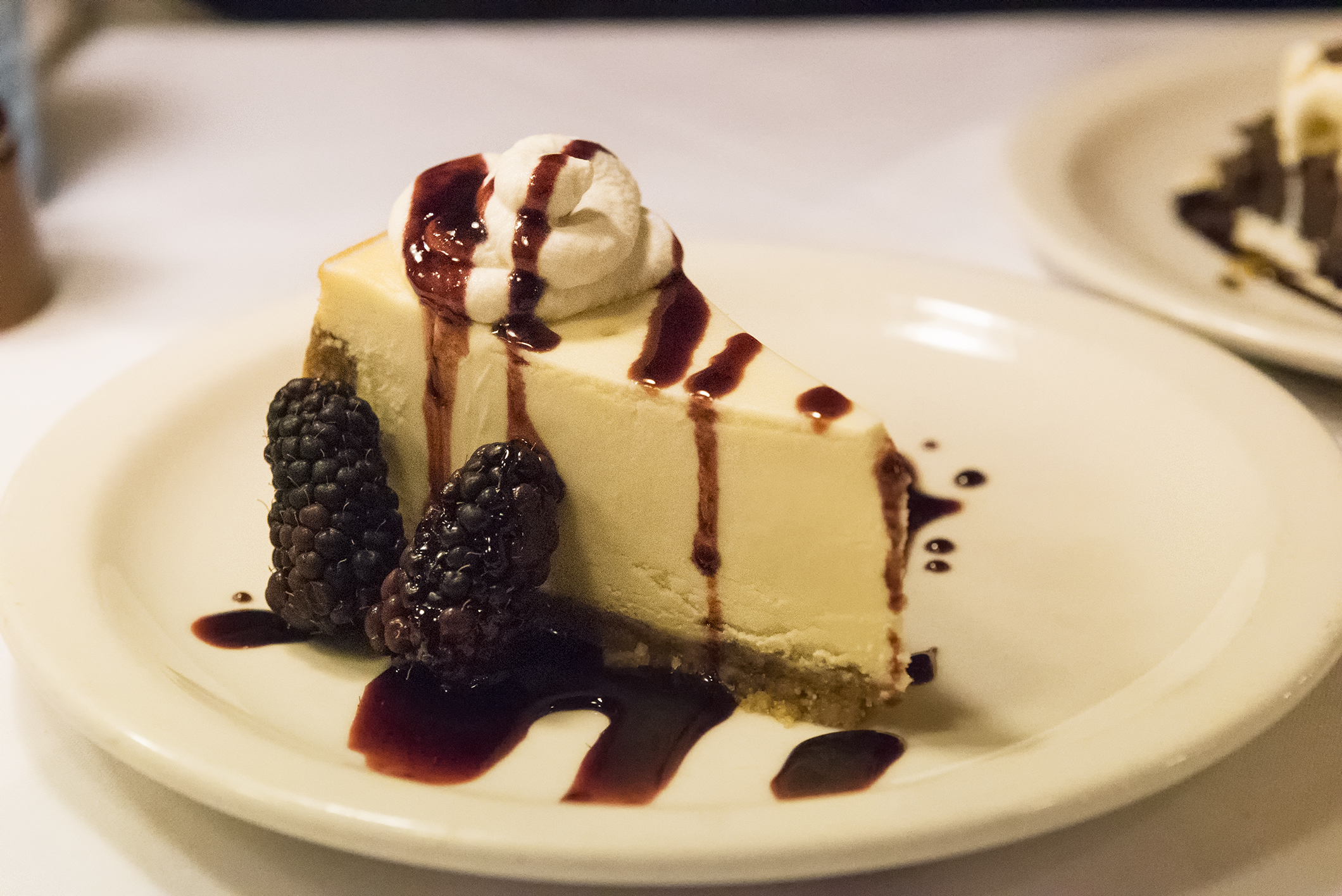 My wife had the cheesecake. Pretty good actually, except for the berry sauce on it that had a sort of processed, “from a squeeze bottle” kind of flavor to it.