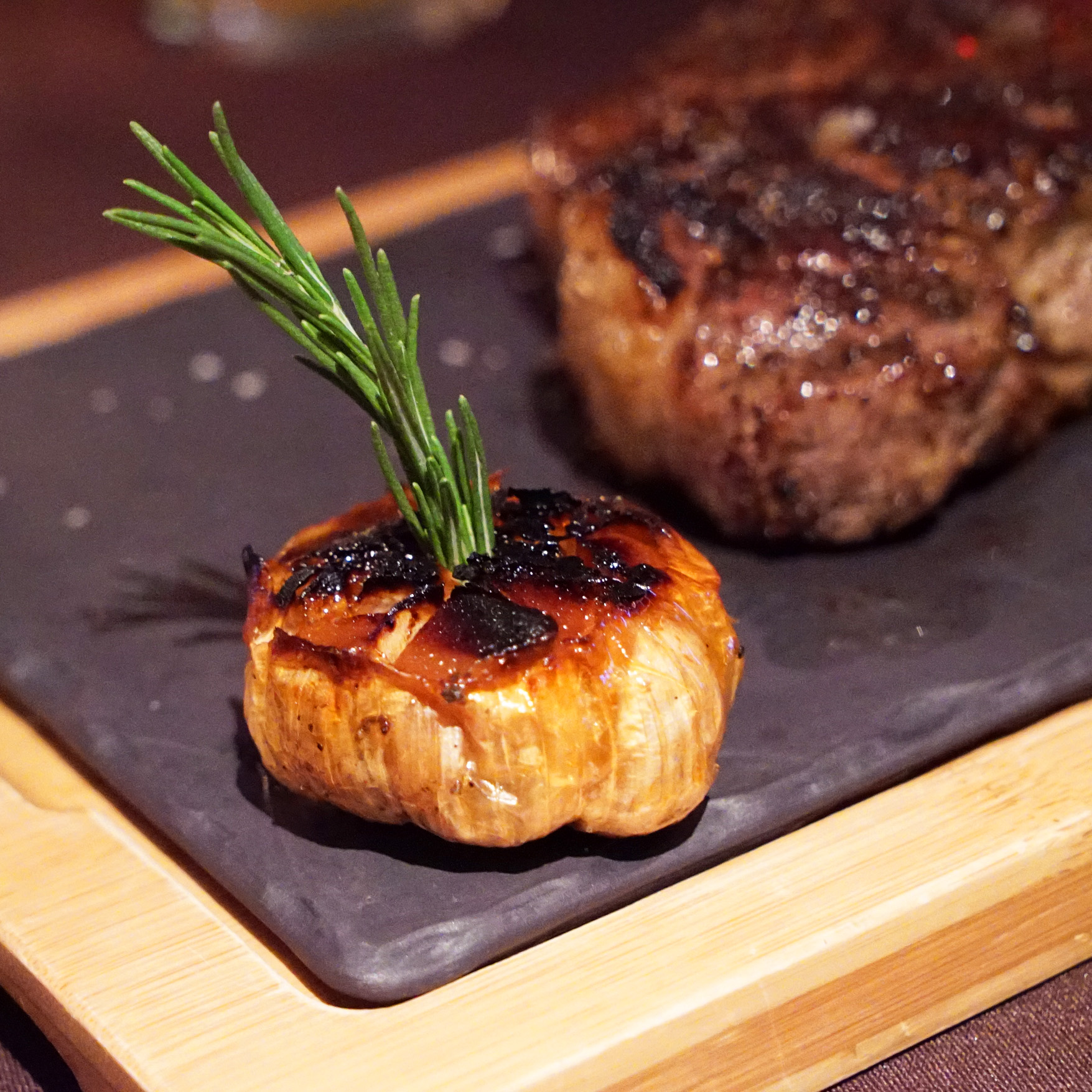 The steak was served with some roasted garlic too, which was really soft and spreadable.