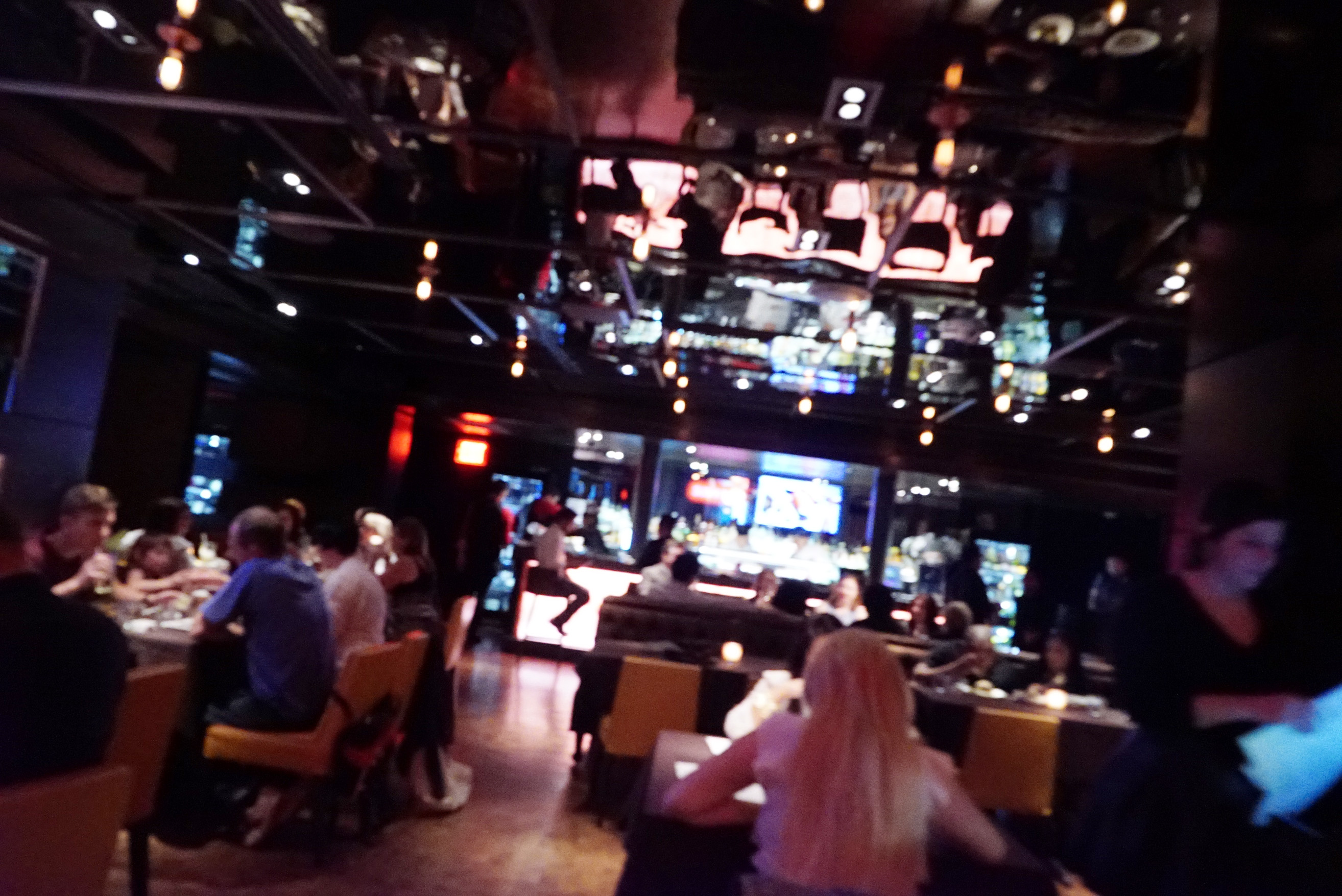 While I can’t really give a full blown review of the ambiance here, since we were limited to a smaller portion of the restaurant, I can confidently assess the place based on what I saw. The lighting is very dim. Big props to Sony for creating a camera like the Alpha 7S, which is a fucking BEAST in low light situations. The music was somewhat ridiculous: very bad, corny 90’s music. I think Hootie & the Blowfish played at some point, which is funny because I mentioned above that I wanted the blowie special without any mention of the hooters. Okay so too dim, bad music, an awkward video screen displaying a generic, stock image of sushi with the word “sushi” next to it… BUT a very cool hallway that connected to the bathrooms and the adjacent Sanctuary Hotel (lots of Buddha and far eastern/Indian statues – those were cool).