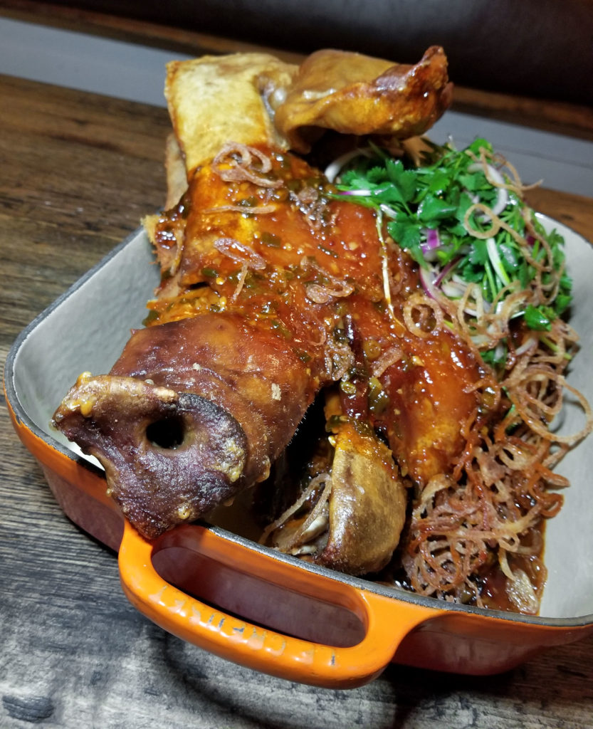 This thing is insane, and for $85 it can easily feed four people. It comes with cilantro, pickled onion and pancake wraps.