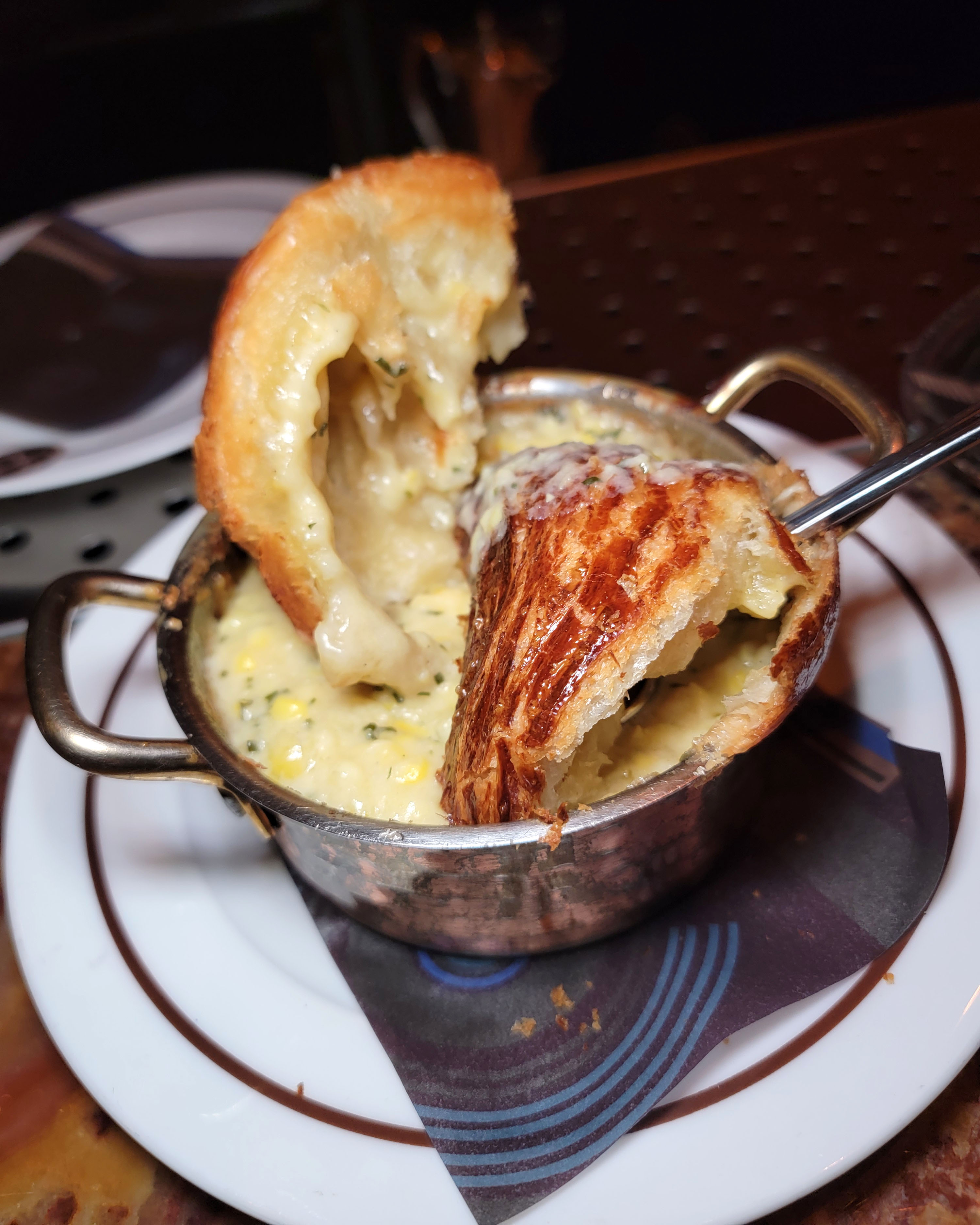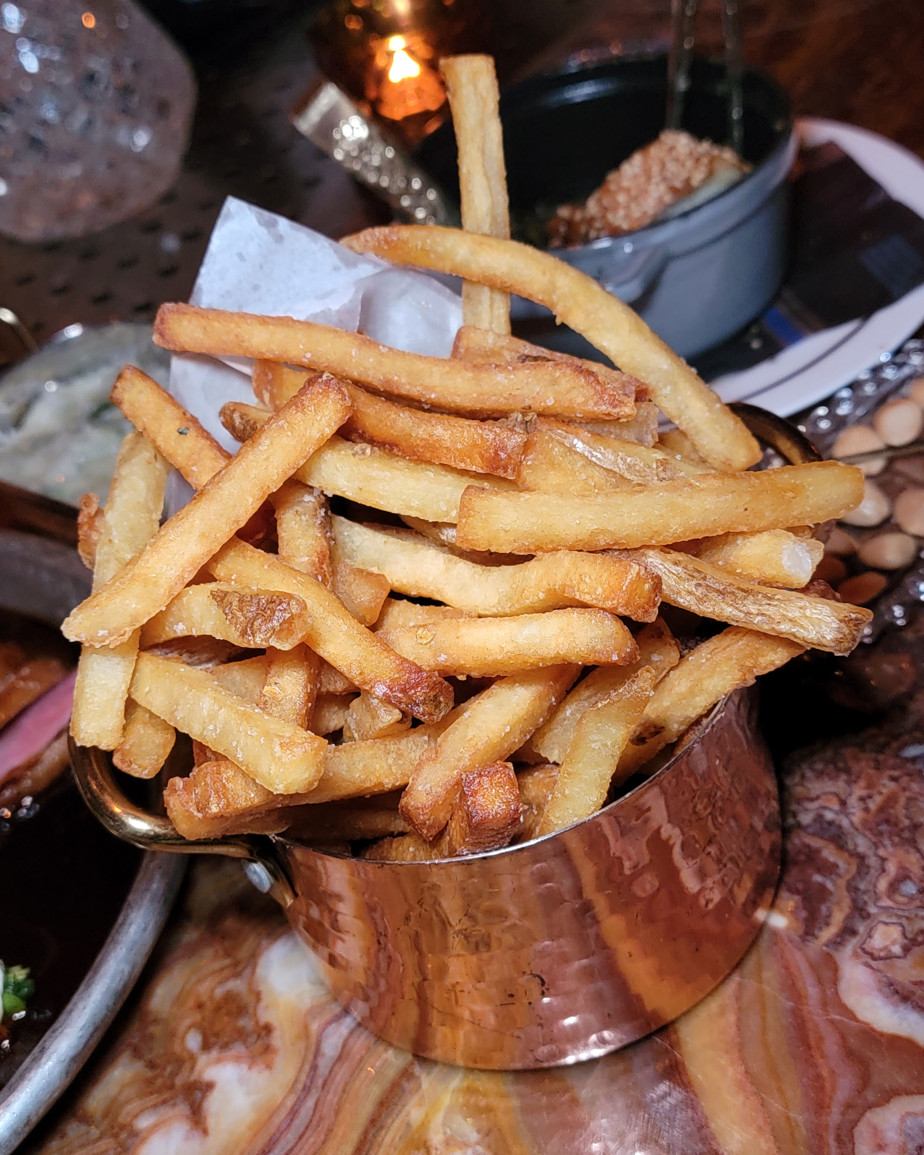 For sides, we had the french fries, the brulee corn pot pie, and the truffle and leek creamed spinach. The creamed spinach really stood out as the winner here, but we brought the brulee corn home and it was even better cold from the fridge than it was at the restaurant. It firmed up into a pudding of sorts, and it was incredible!