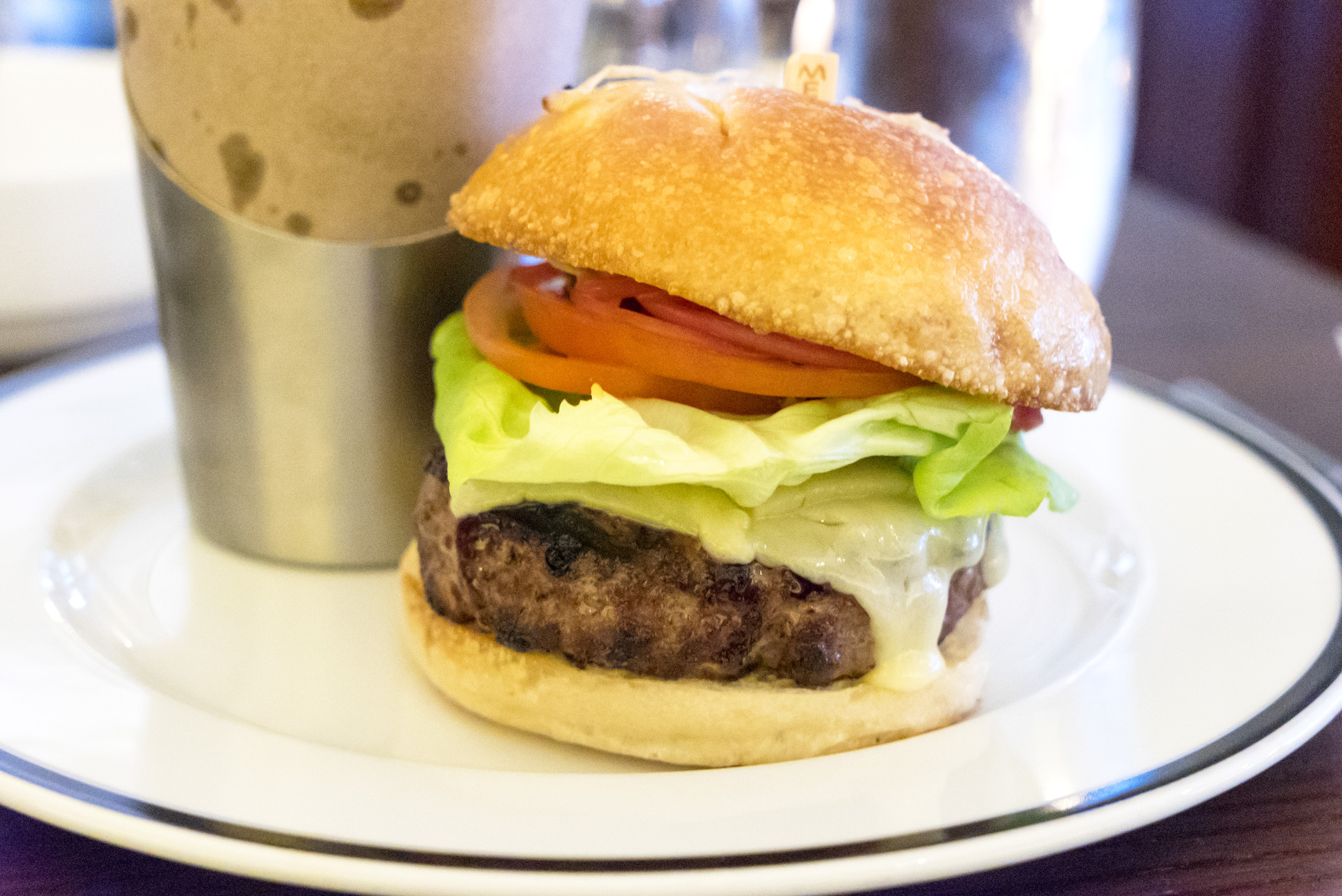 I had the burger, with added cheddar. The burger, as-is on the menu, does not come with cheese. They had either cheddar or gruyere when I asked.