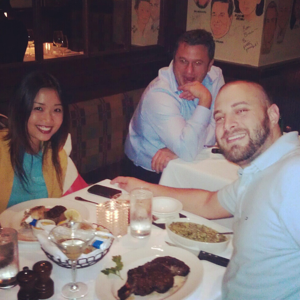 The Palm has tons of drawn faces all over their walls. Apparently if you spend enough time and money there, they will immortalize you in cartoon form on the walls of their establishment. As you might expect, lots of famous people have their faces plastered on the walls in there. I had the privilege of looking at Jason Alexander and Mel Gibson throughout the meal, as they were depicted on the column nearest to our table. The story goes that young artists with no money used to create drawings of celebrities that dined there; in exchange they would receive a plate of spaghetti from the owner. That’s the lure and legend of how it all started. Cool. Other than that stuff, the ambiance is standard for steak joints: dim lighting, dark wood, and it smells fantastic. The tables were a little close together where we sat. It’s a good thing my wife and I are friendly people, otherwise the triple date with our new friend Ray would have been awkward. The bathrooms could use an upgrade: they were like any bar bathroom in Manhattan. There was an attendant one time I went in, but not the second time. I don’t think one is needed (ever – unless they have everything I need to shave my entire face).