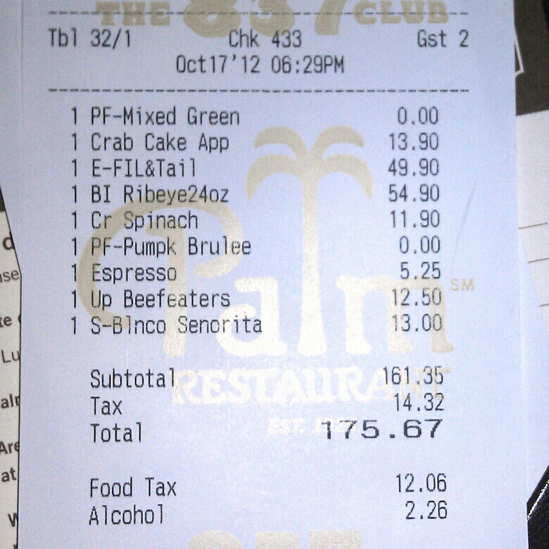 Check out the bill below and make your own judgments. I thought it was a fair price for an above average meal. Normally our bills come to a much higher figure. The surf & turf deal for $50 is a nice bargain.