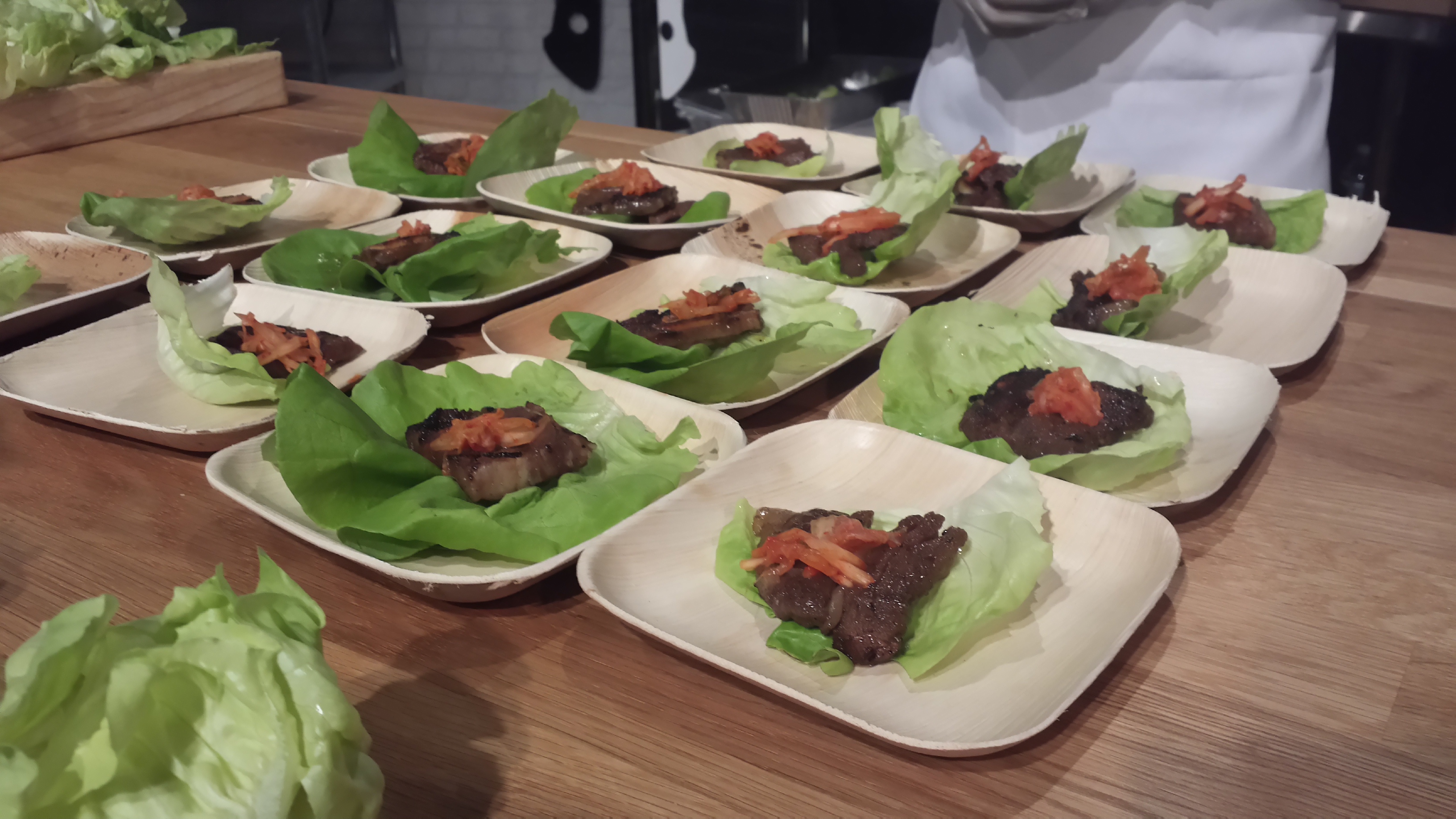 Dale served up some Korean style short ribs, which I absolutely LOVE in general. However, he served them in lettuce cups as if they were de-boned and ready to pop in your mouth without any additional work. I took a bite and came right down on the bone. No worries though. Once I knew what was up, I put the lettuce cup down and used two hands to pull the meat off the bone.