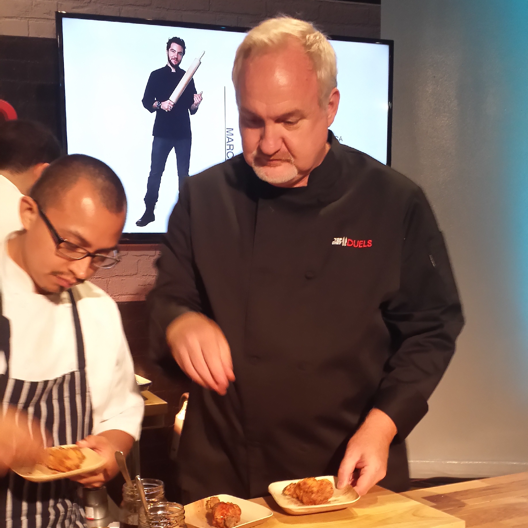 So they had the place set up with three major battle stations, featuring six of the chefs and the dishes they dueled with. The main station was Marcel Vigneron vs. Richard Blais.