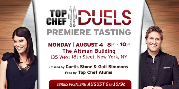 One thing we’ve been privy to in the past was the Top Chef Masters Premiere Party. This season’s re-imagination of the Top Chef brand is called “Duels.” We had a lot of fun last time, and got to meet all the chefs, so grabbing hold of my wife’s perks this time too was a no-brainer. I love my wife’s perks.