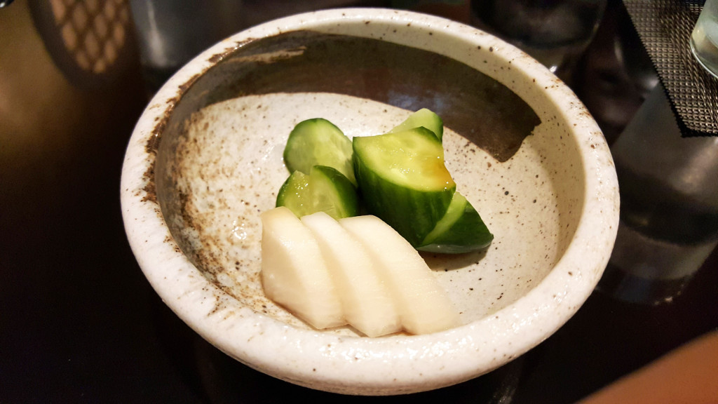 First was a bowl of pickled cukes and daikon. Unimpressive, for me.
