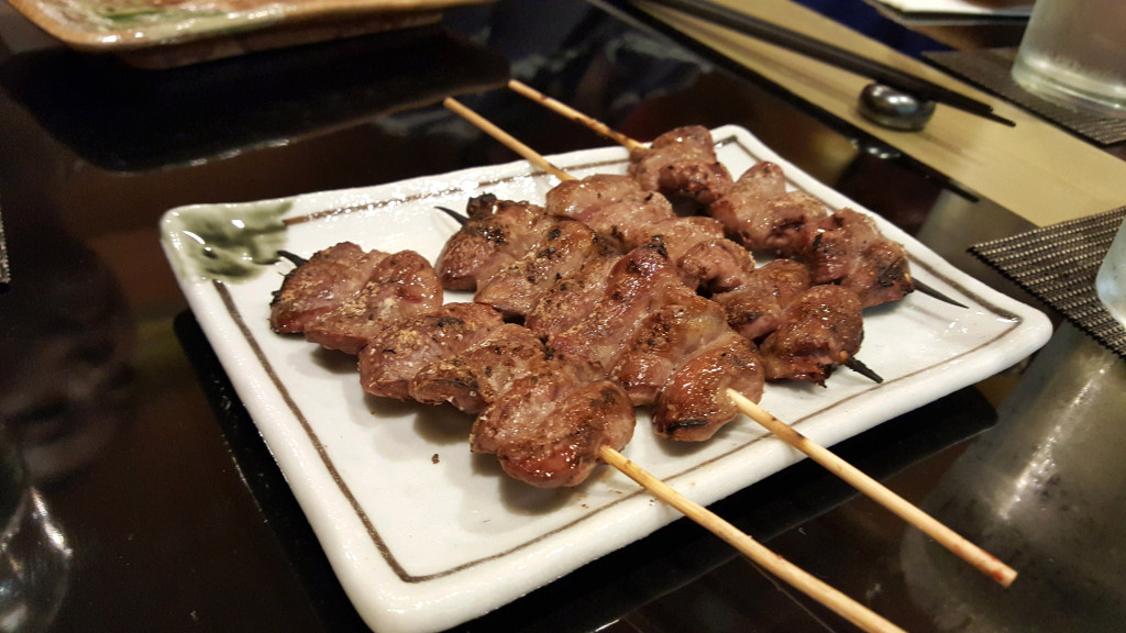 Now on to some good shit. Chicken hearts. These were very tasty, and probably one of my favorites of the evening. They tasted, to me, like mild beef skirt steak.