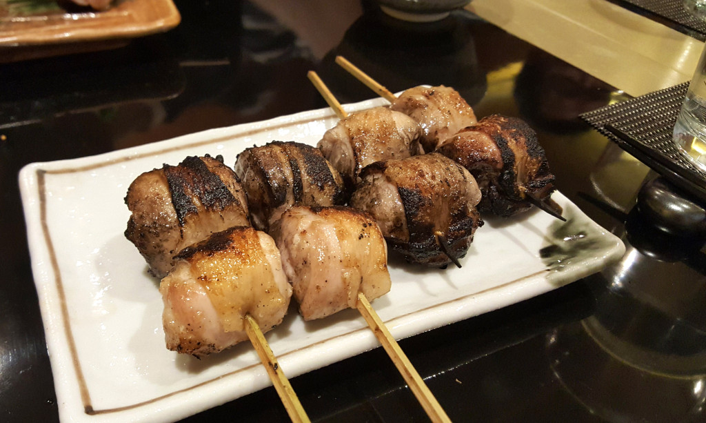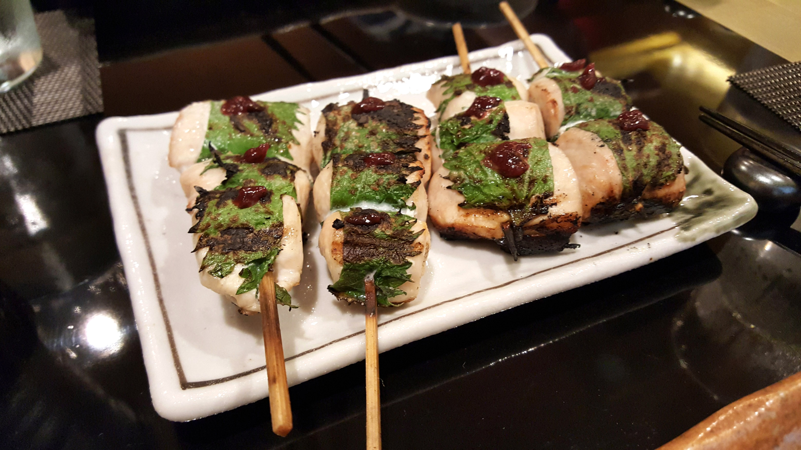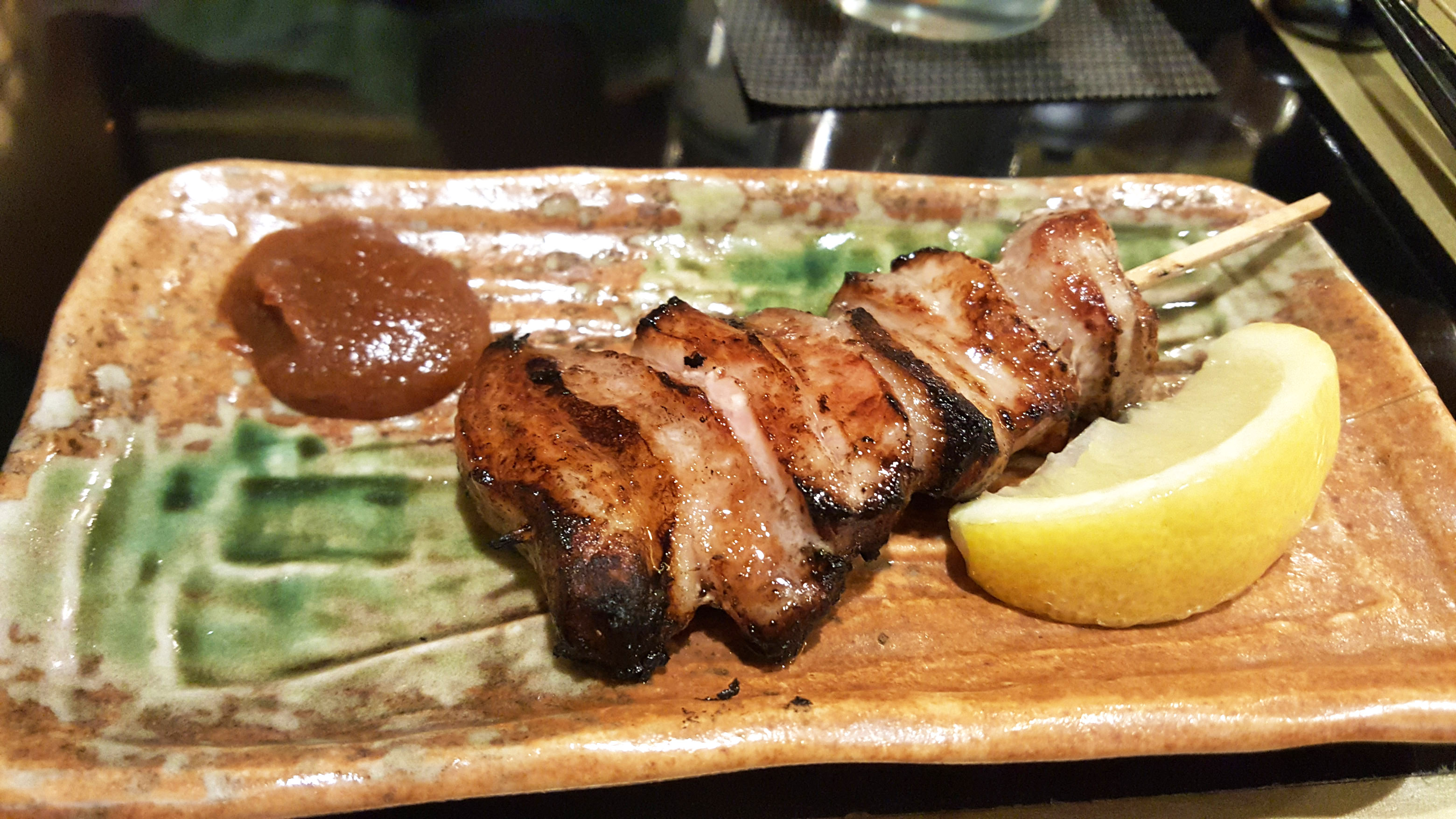 Chicken thigh meat wrapped in chicken skin. I liked this skewer a lot.