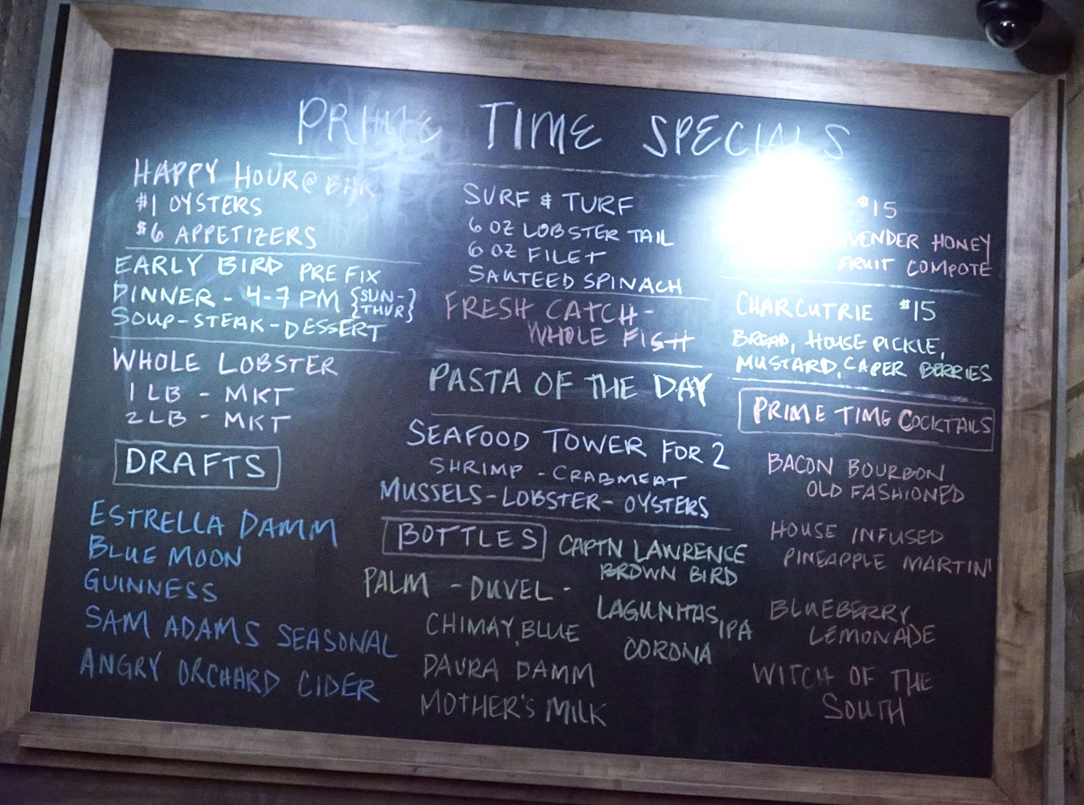 In the back, There was a chalk board listing a bunch of specials. Some of the items on the board overlapped with the menu, or contained different information than what was on the menu, but the specials were mostly in the realm of apps, sides, drinks and non-steak entrees. For other meats, they offer veal and lamb in chop form.