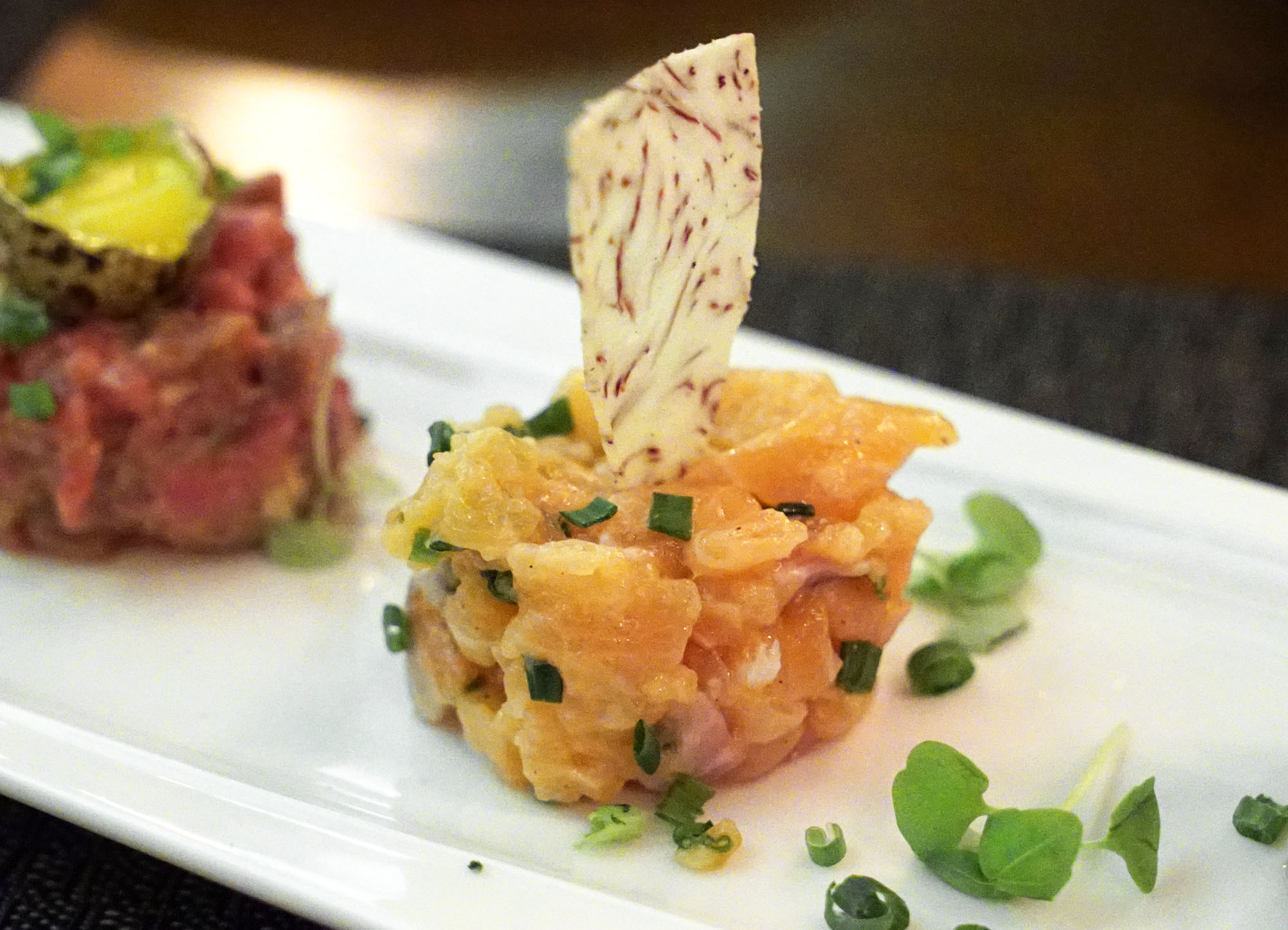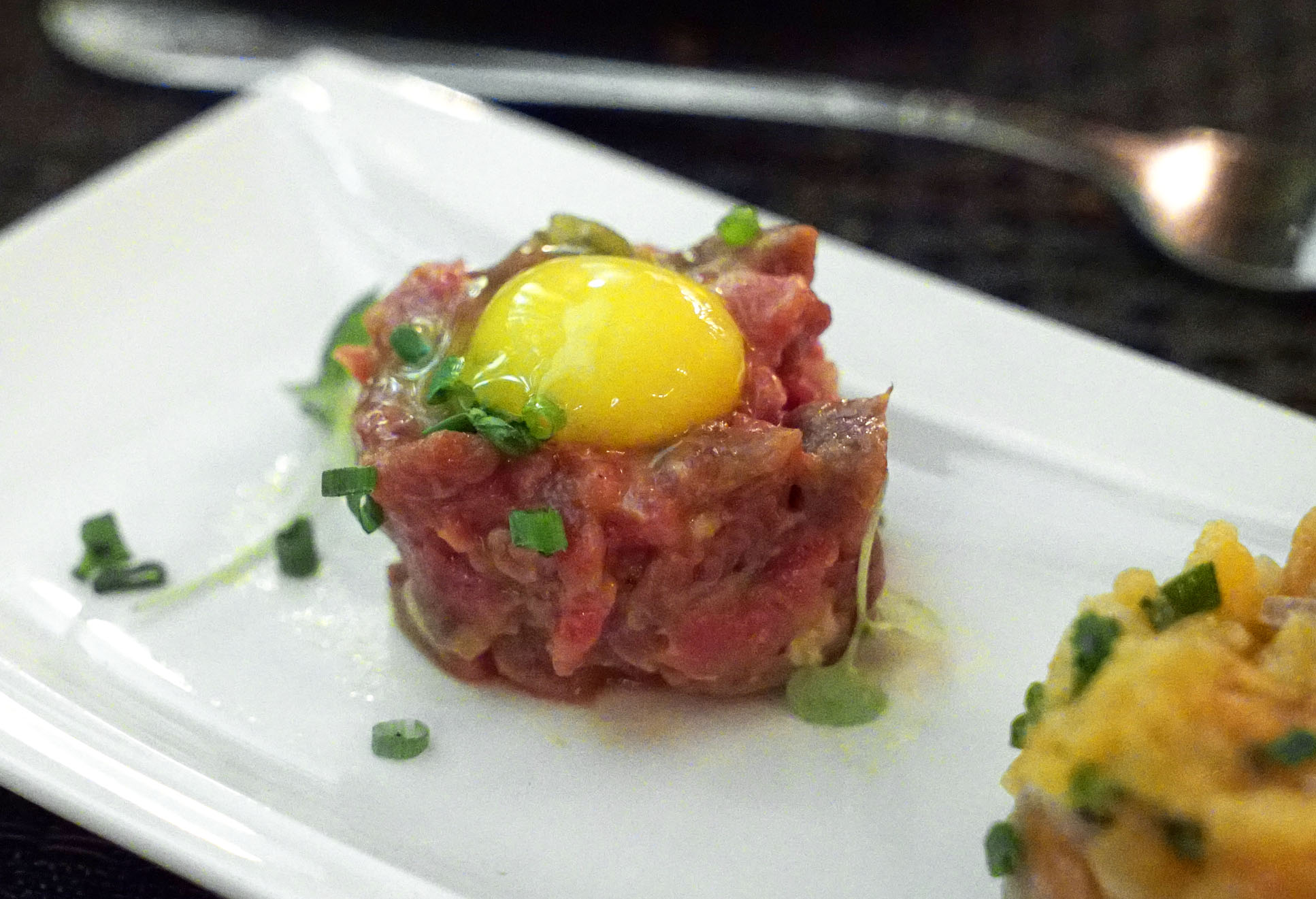 We also tried the tartare trio, which came with small portions of beef, salmon and tuna tartares. The beef was elegantly served with a raw quail egg on top, ready to rock: