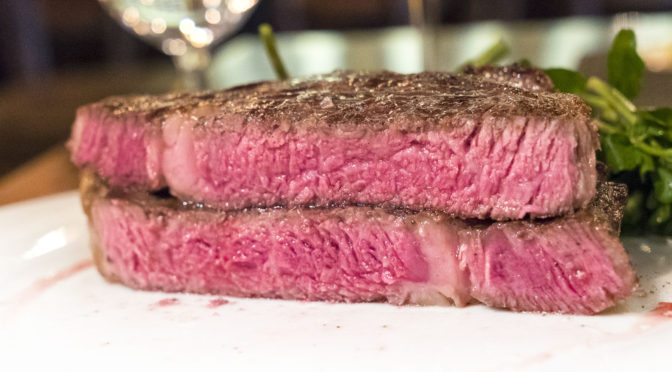 On a second visit for a press meal, the rib eye was listed at $58 and 22oz. I gave it a try. It was much more tender and juicy. It had some bleed out that wasn’t present last time, since this is grilled rather than seared in a pan (as you can see by the grill marks), but the flavors were a lot more robust and enjoyable. I bumped the score up a point from 7/10 to 8/10.