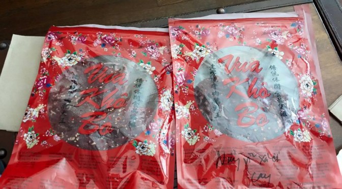 You can score this shit in most Asian markets, or dry goods stores around Chinatown. The wording on the package is Vietnamese, and roughly translates to something like King Beef Jerky, according to my wife.