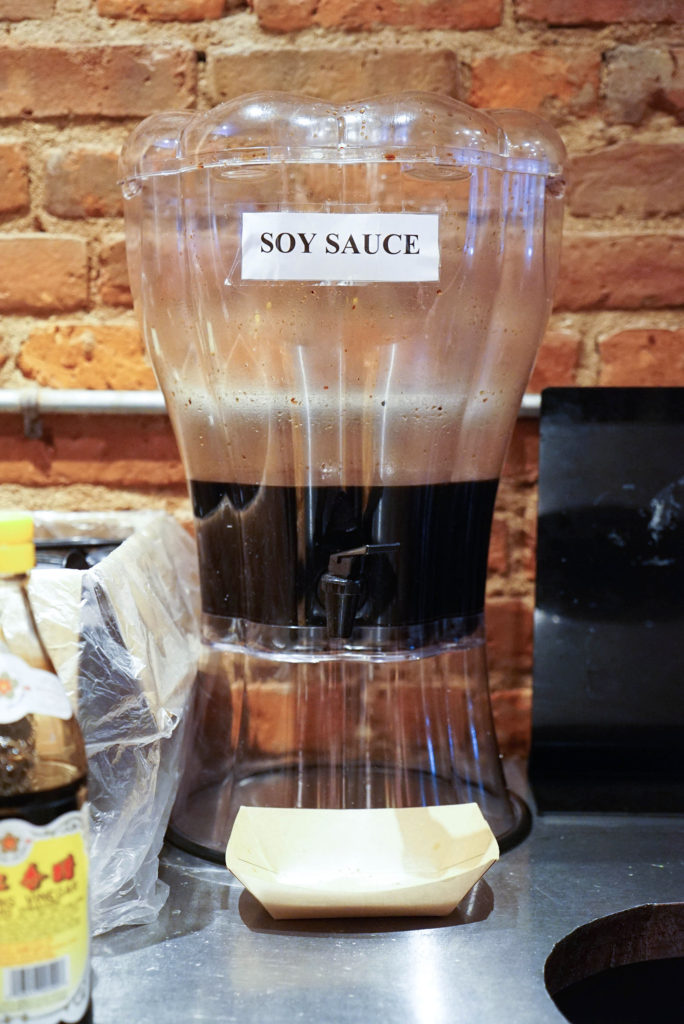 And while this whole fish dish isn’t on the menu (staff caught it the day before and served it to us special), one awesome thing at this place is a water cooler filled with soy sauce. Yup.